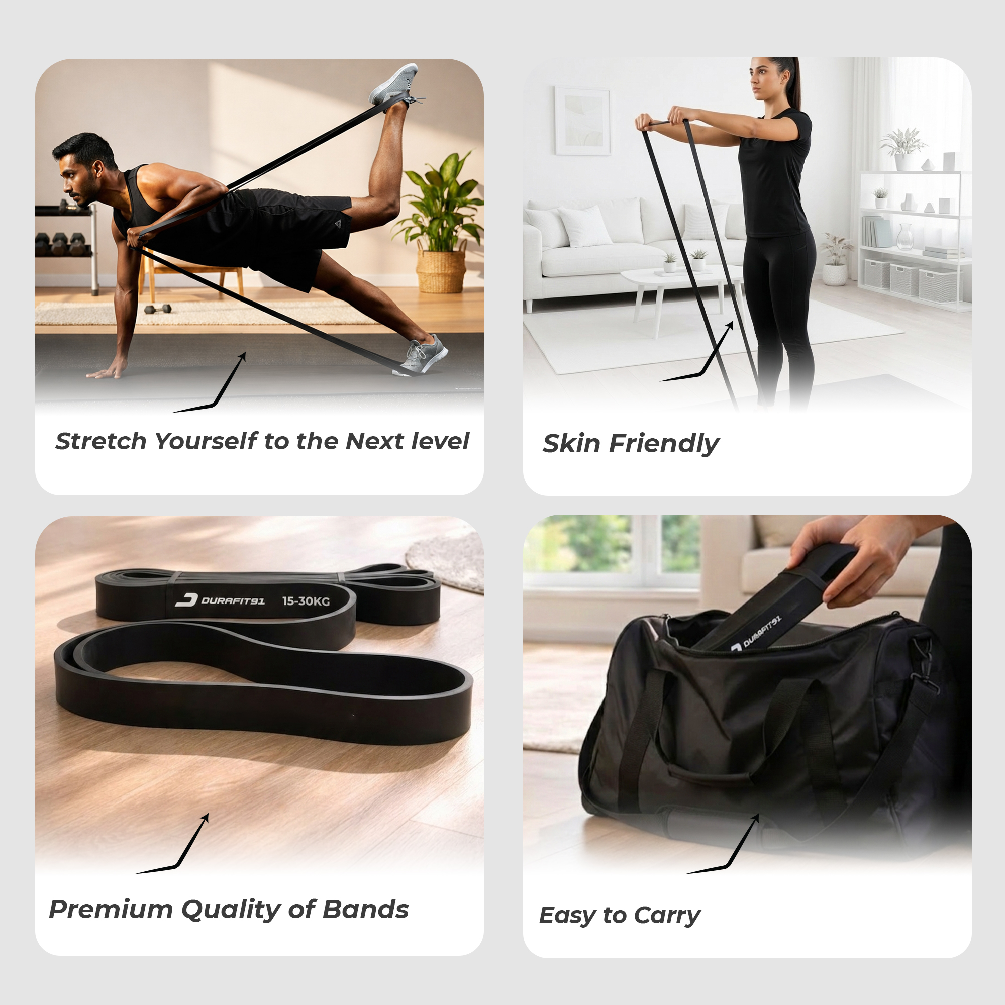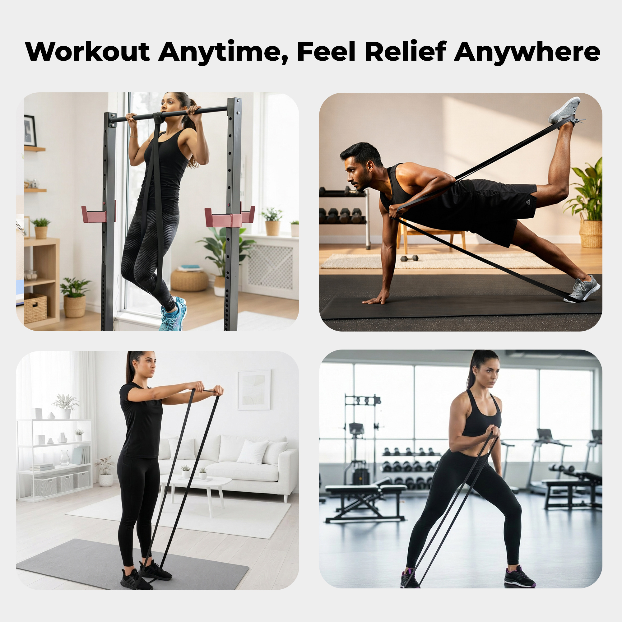 The Durafit91 Heavy Resistance Band Set is designed to support effective full-body workouts for all fitness levels. Made from 100% premium natural latex, this set includes five resistance levels—X-Light, Light, Medium, Heavy, and X-Heavy—allowing you to gradually increase workout intensity as your strength improves. Whether you’re a beginner or a professional athlete, these bands adapt to your training needs. Perfect for home gym and strength training, Durafit91 resistance bands activate muscles in the same way as free weights while offering safer, joint-friendly resistance. Use them for pull-ups, shoulder workouts, chest training, leg exercises, and core strengthening to build strength, endurance, and muscle control. These loop resistance bands are highly versatile and ideal for glute and hip activation, stretching, toning, yoga, Pilates, and mobility exercises. They help improve flexibility, balance, and overall workout efficiency while supporting smooth and controlled movements. Designed for multi-functional full-body use, the bands effectively target arms, chest, abs, glutes, and legs. They are also widely used for physiotherapy, rehabilitation, injury recovery, and mobility training, making them suitable for men and women at every fitness stage. The complete workout kit includes five resistance bands and a door anchor, enabling a wide range of exercises safely at home. Just 15–20 minutes a day is enough to build strength, tone muscles, and maintain consistent fitness progress with Durafit91.