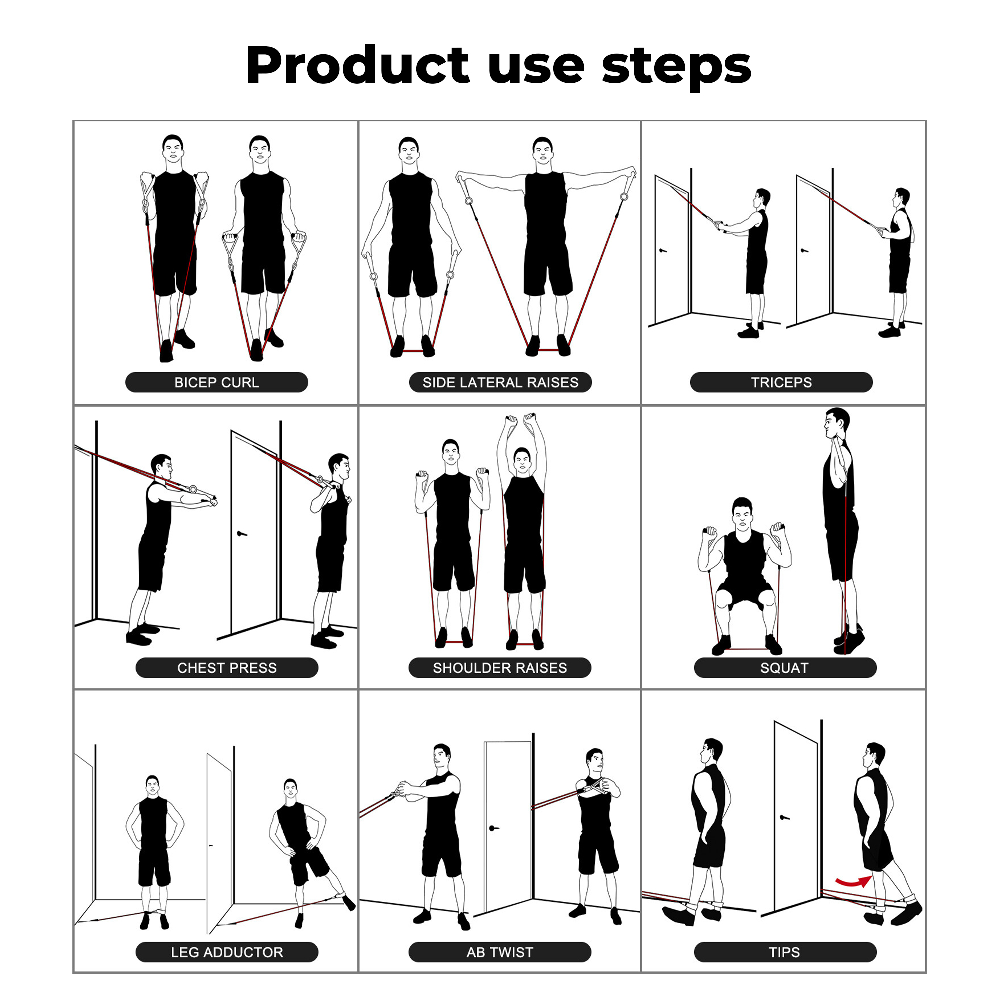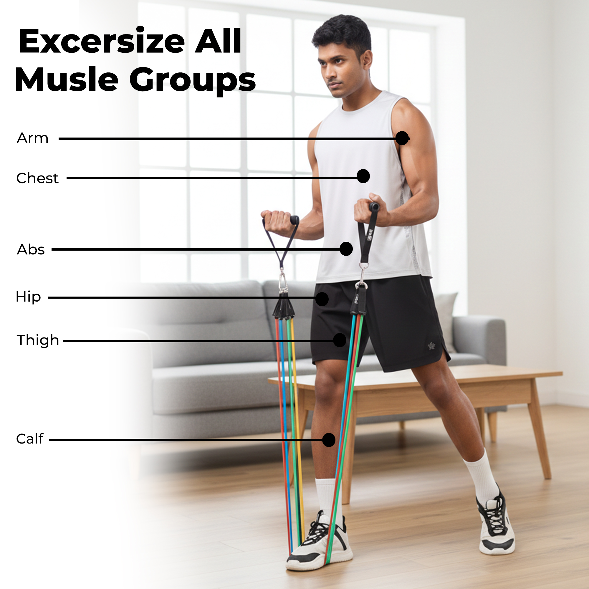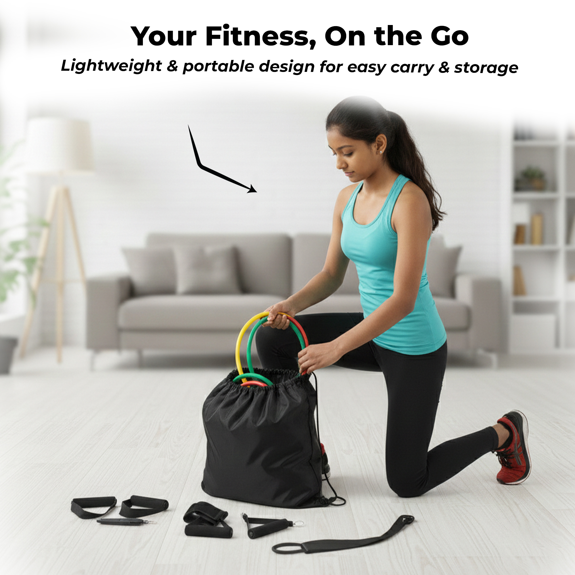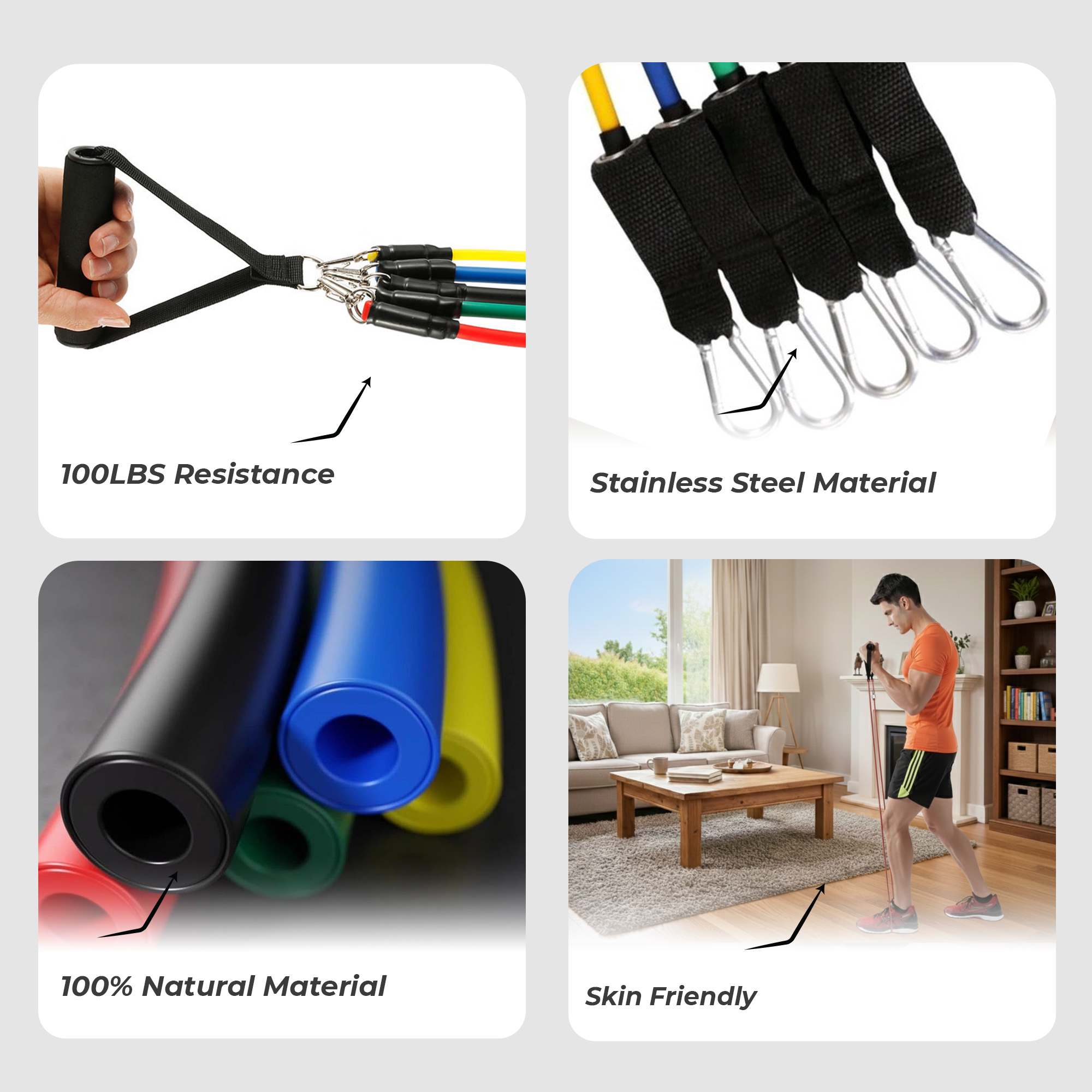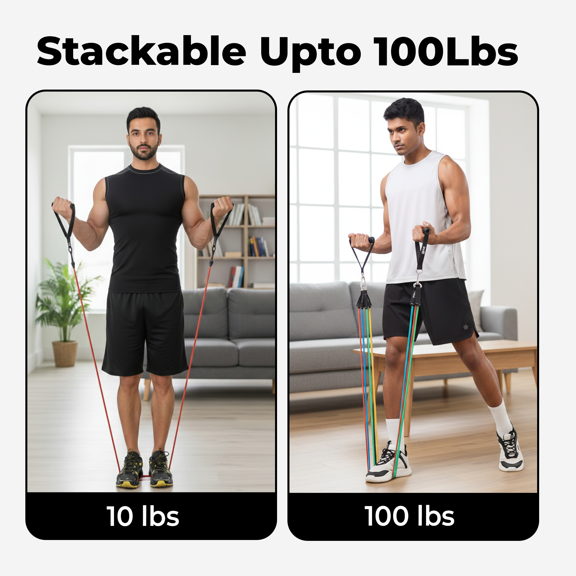 The Durafit91 Stackable Resistance Band Set is a complete, versatile fitness solution designed to support full-body workouts anytime, anywhere. The set includes five color-coded resistance bands—Yellow (Very Light – 10 lbs), Green (Light – 15 lbs), Red (Medium – 20 lbs), Blue (Heavy – 25 lbs) and Black (Very Heavy – 30 lbs). Use each band individually or stack multiple bands together to achieve customizable resistance up to 100 lbs, making it ideal for beginners and intermediate fitness users. Perfect for strength training, muscle toning, stretching, mobility exercises and rehabilitation, these resistance bands allow you to perform over 50 different exercises targeting arms, shoulders, chest, back, core, glutes and legs. They are suitable for home workouts, gym sessions, office breaks, hotel stays or travel fitness routines. Designed with portability in mind, the set comes with a compact storage pouch that makes it easy to carry and store. The complete accessory kit includes two foam handles for a comfortable grip, two ankle straps for lower-body workouts, a door anchor for secure resistance training, and a workout guide to help you get started. Each band measures 48 inches (120 cm) and is made from durable, high-quality material for safe and reliable performance. For best results and long-term use, avoid stretching beyond 2.5× the original length, inspect bands before every workout, and keep them away from rough or abrasive surfaces. The Durafit91 Resistance Band Set is a practical, space-saving fitness tool that delivers effective workouts, whether you’re training at home or on the move.
