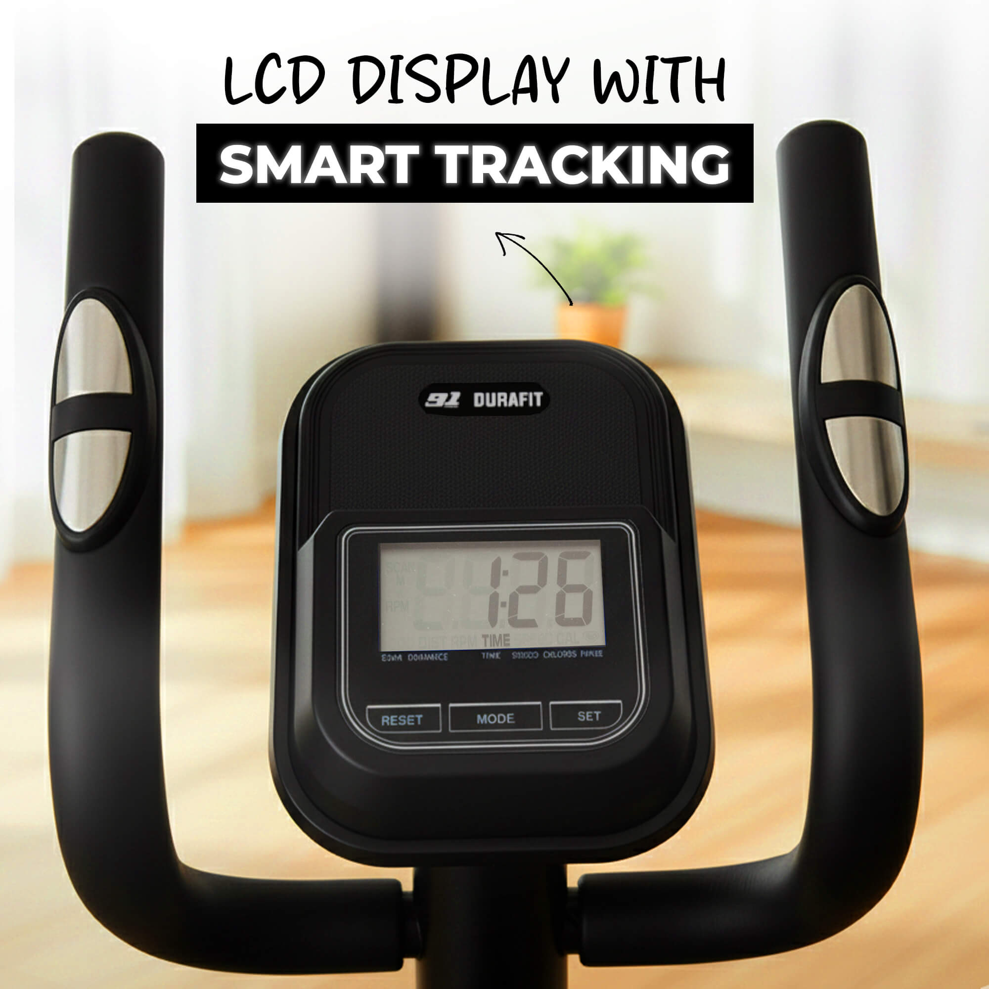 A large LCD display tracks time, speed, distance, calories, and heart rate for easy monitoring.