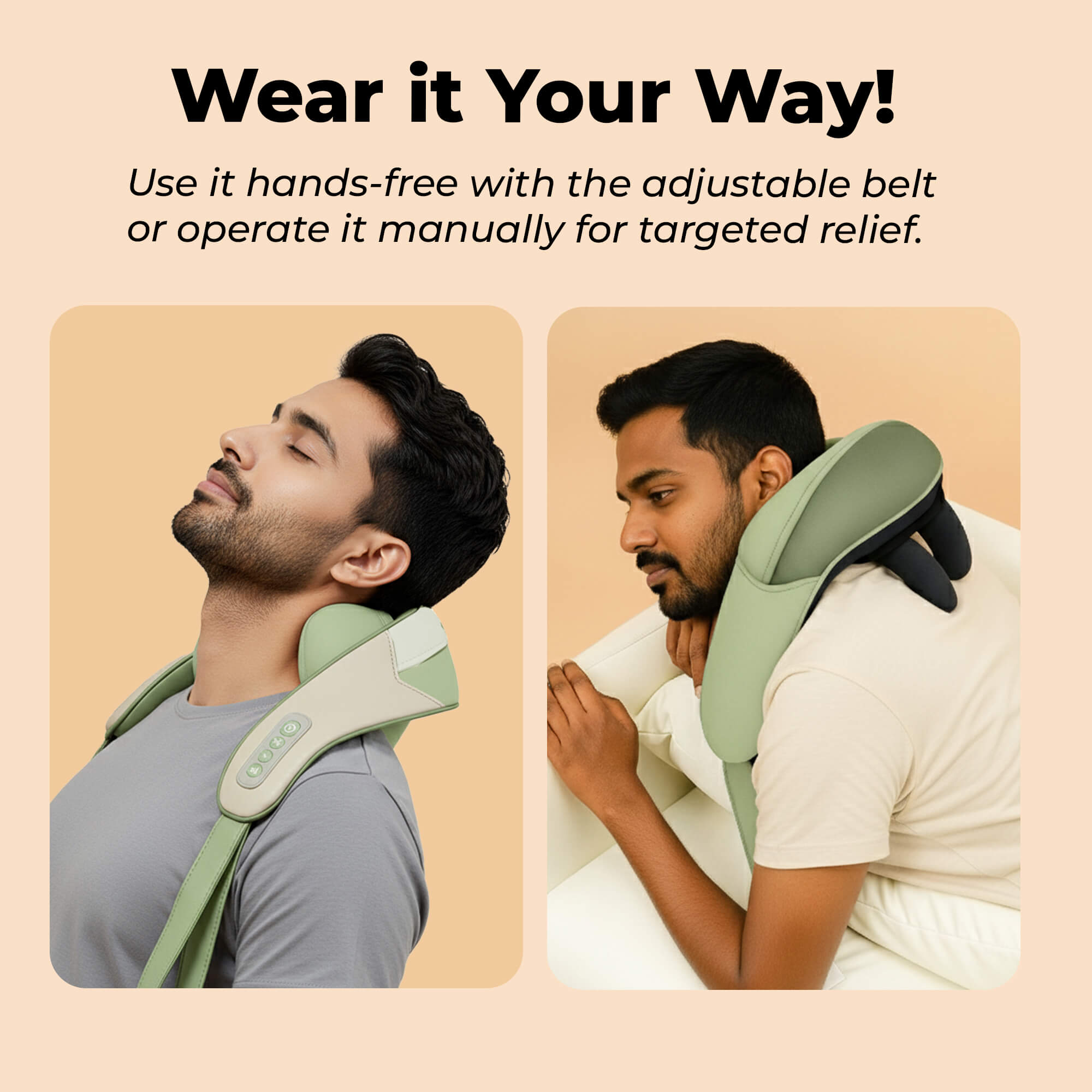 - Ergonomic design fits naturally around your neck for targeted relief