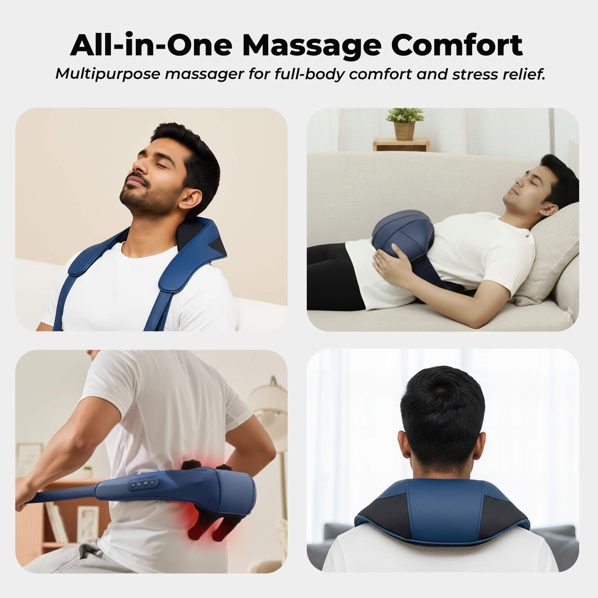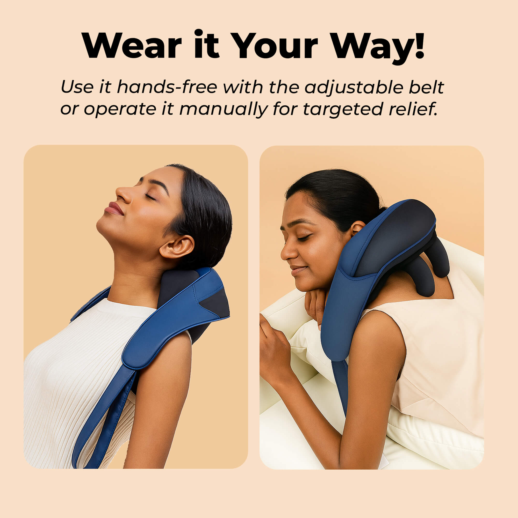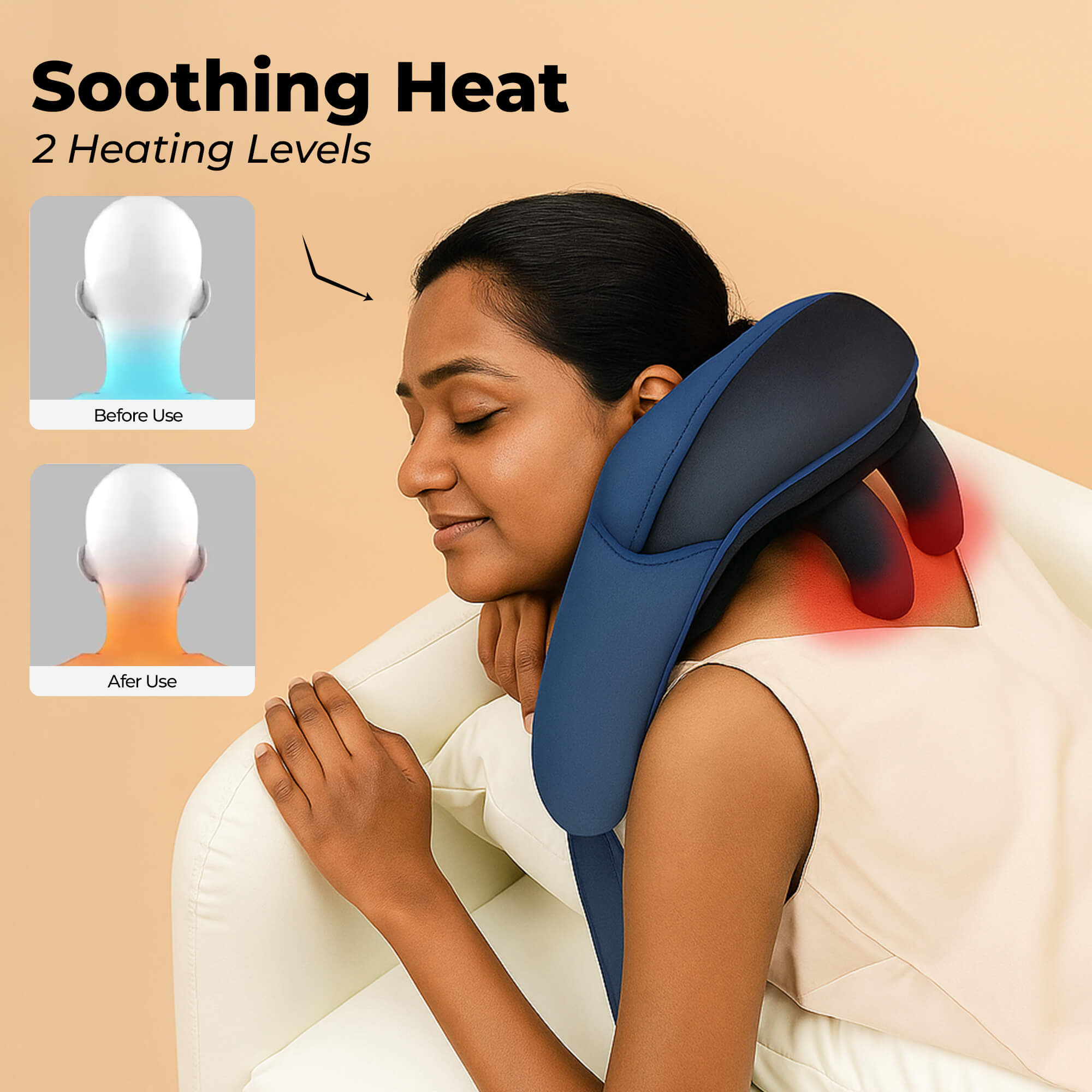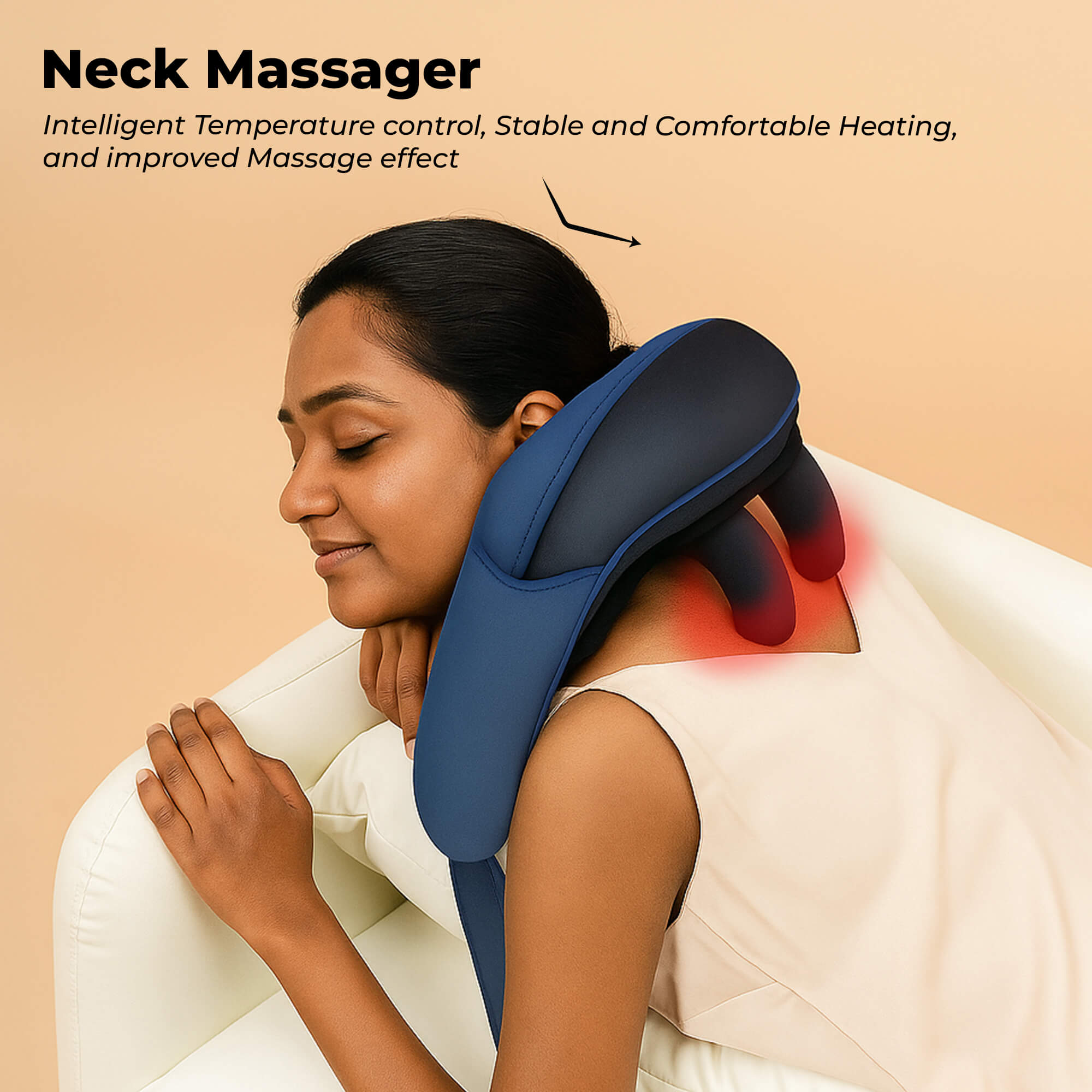 Ease tension and stress with this ergonomic neck massager, designed to fit comfortably around your neck and shoulders. Adjustable intensity and heat settings provide a personalized massage experience that targets tight muscles and knots. It promotes relaxation, improves blood circulation, and relieves stiffness caused by long hours of work or daily stress. Perfect for home, office, or travel, it transforms any moment into a soothing self-care session. Experience deep relief and comfort anytime you need it.