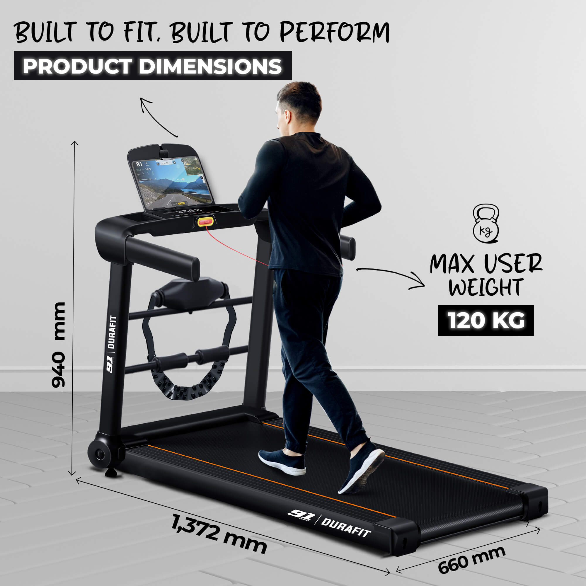 - Supports up to 120 kg (walking) and 90 kg (running)