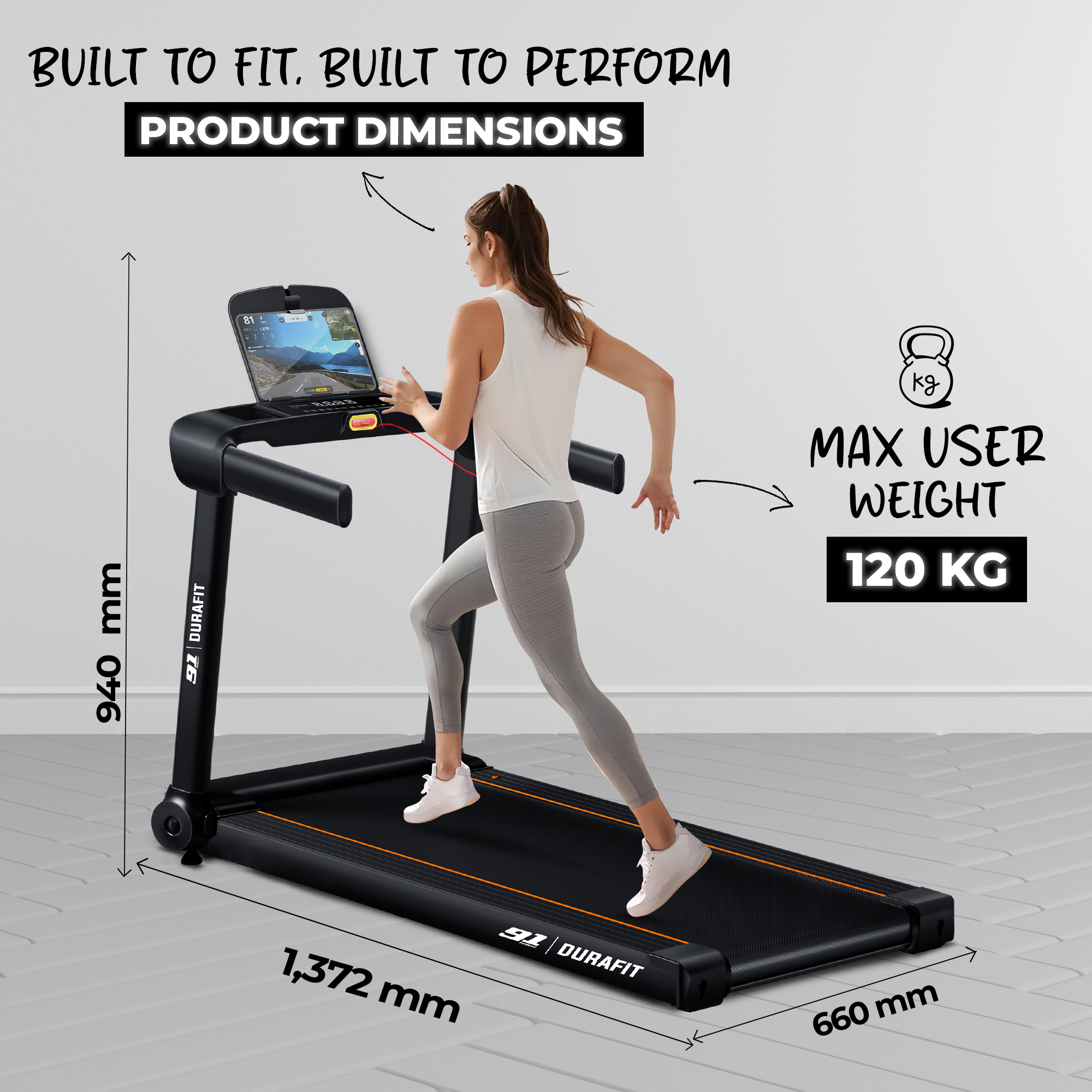 - Supports up to 120 kg (walking) and 90 kg (running)
