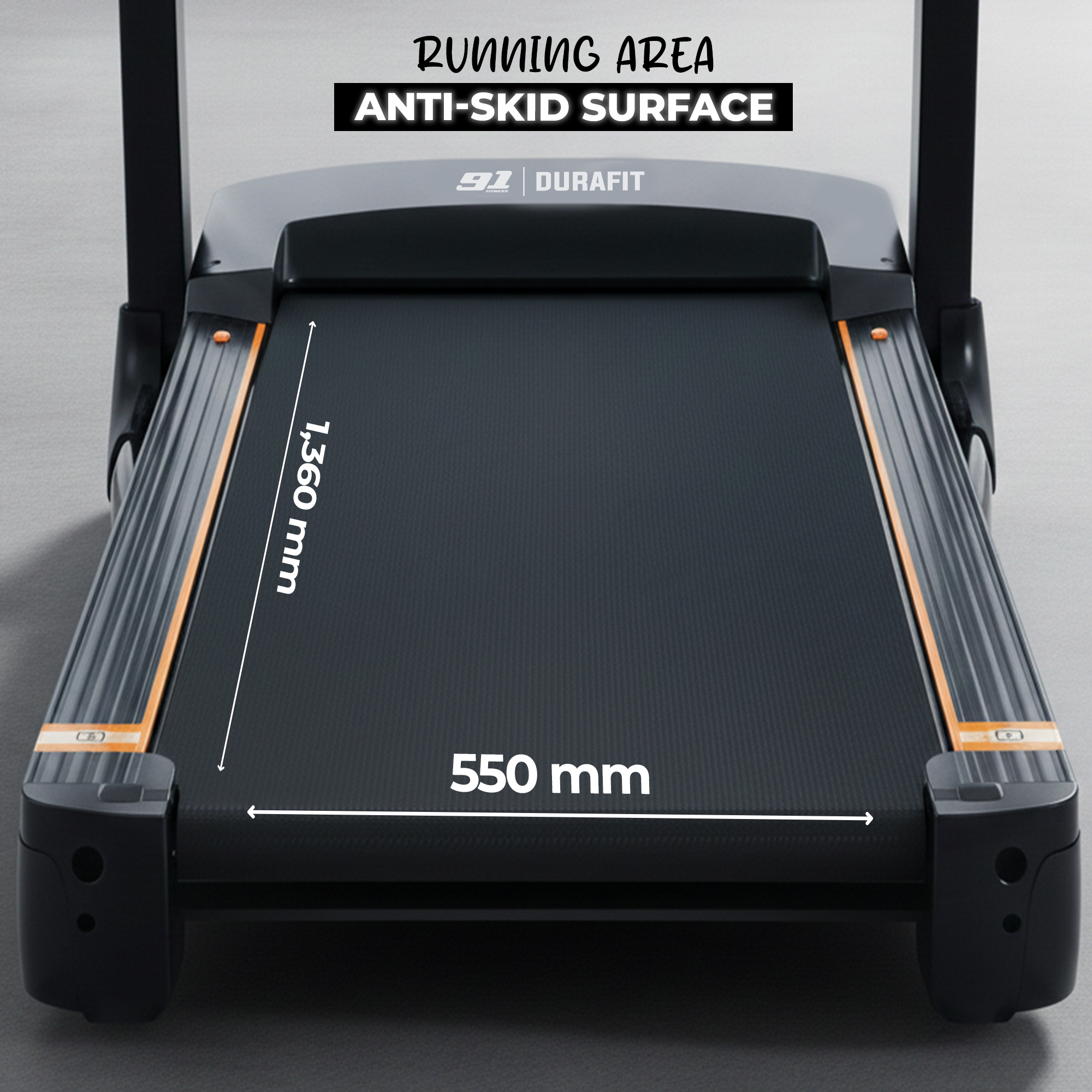 - Spacious 1360 × 550 mm shock-absorbing running belt