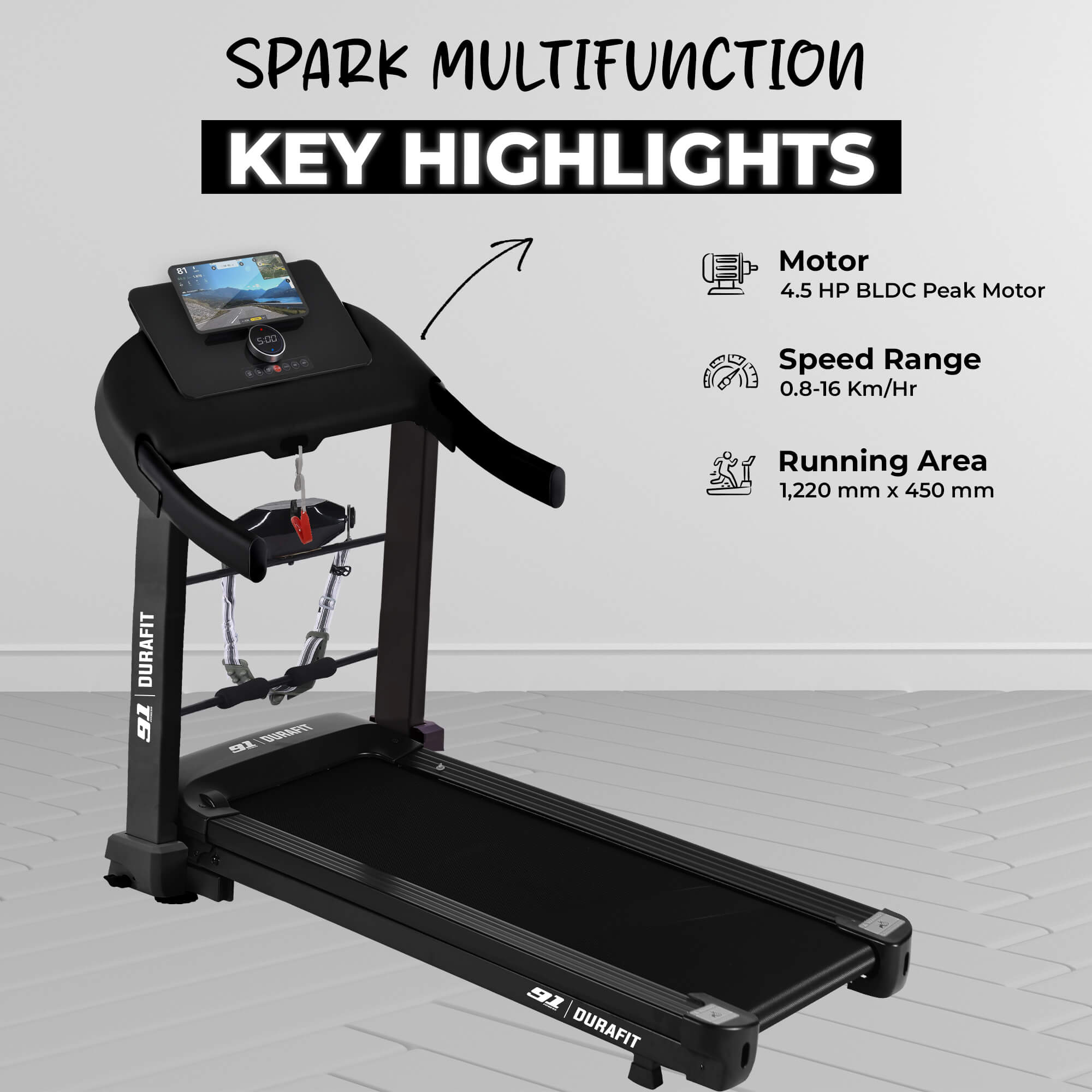- High-efficiency 4.5 HP BLDC motor built for long workout sessions