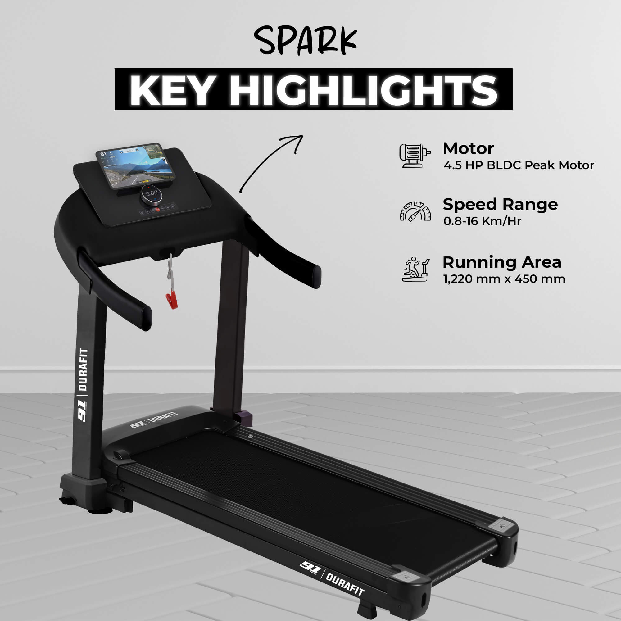 - High-efficiency 4.5 HP BLDC motor built for long workout sessions