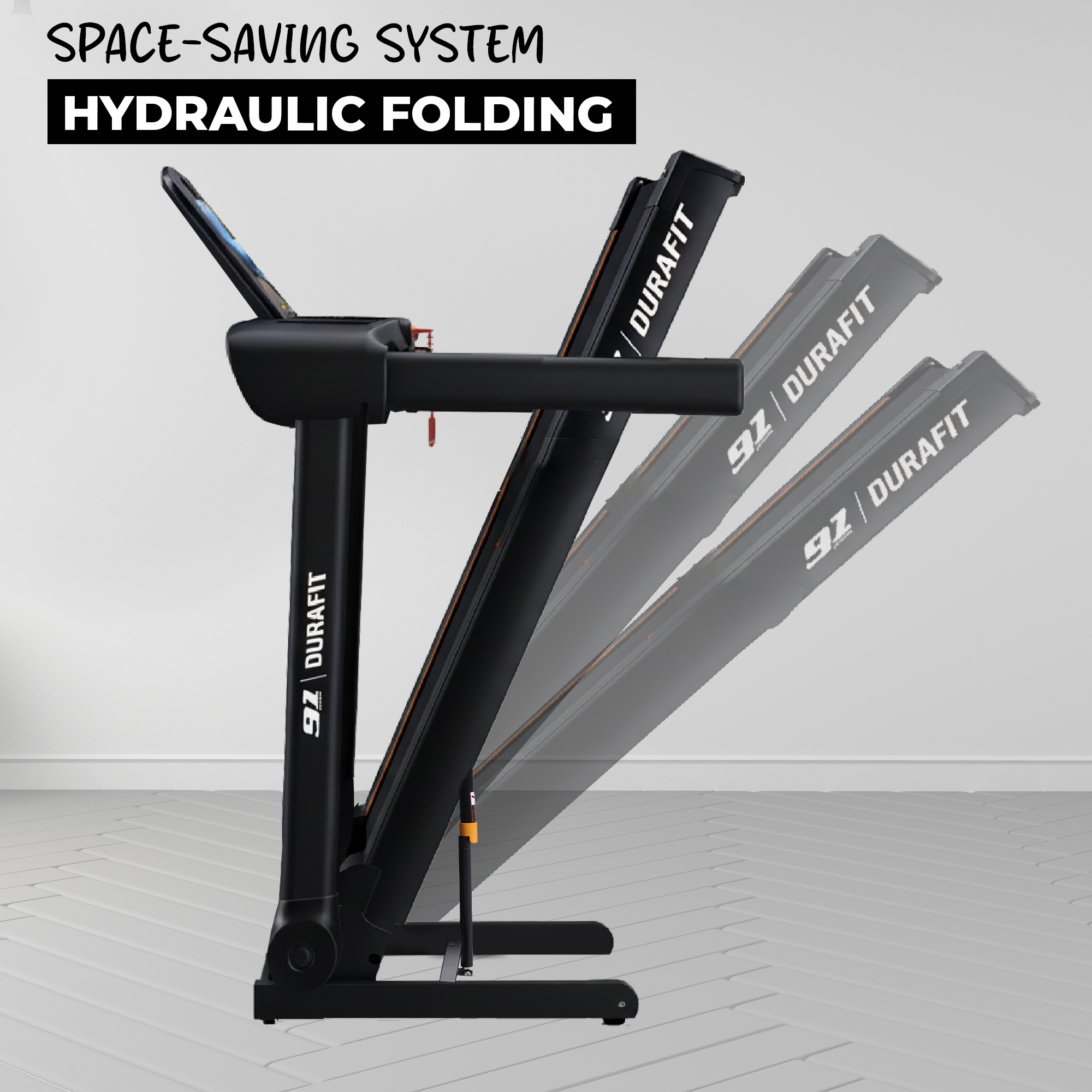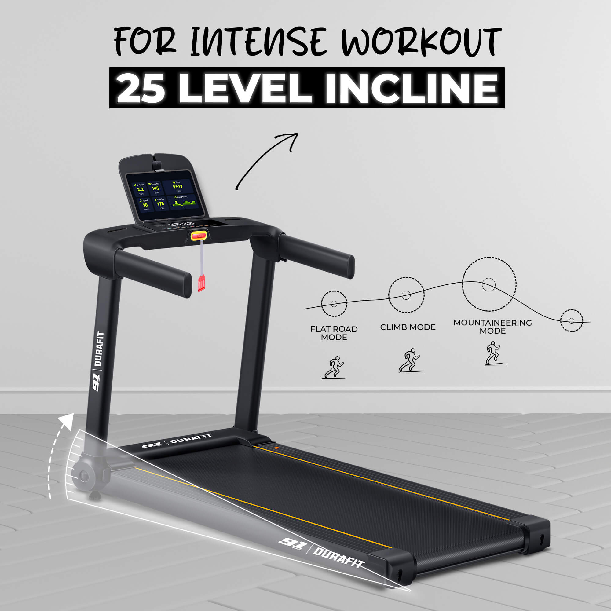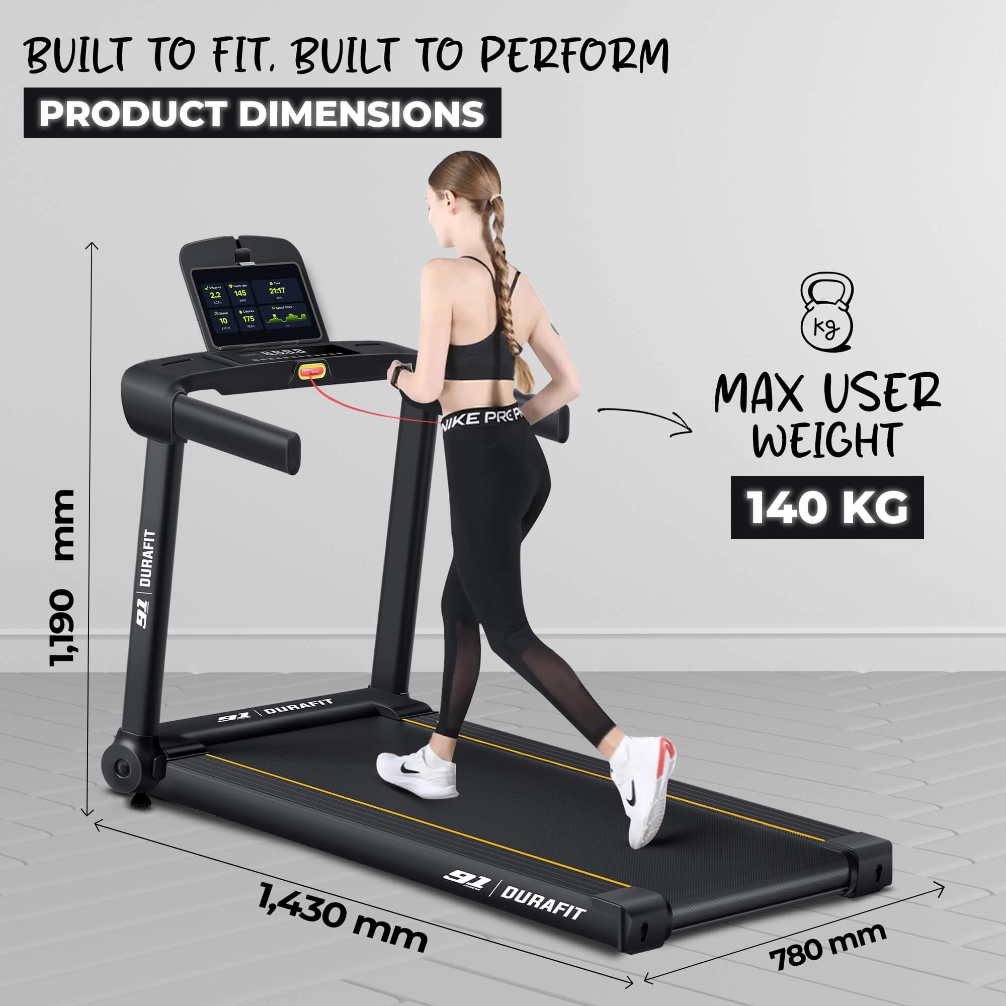 The 91-Durafit treadmill offers good basic performance for daily use. It runs smoothly and feels sturdy, though not premium. A reliable option for regular walking and light workouts. The belt struggles with the weight mentioned. Its foldable and less space needed.
