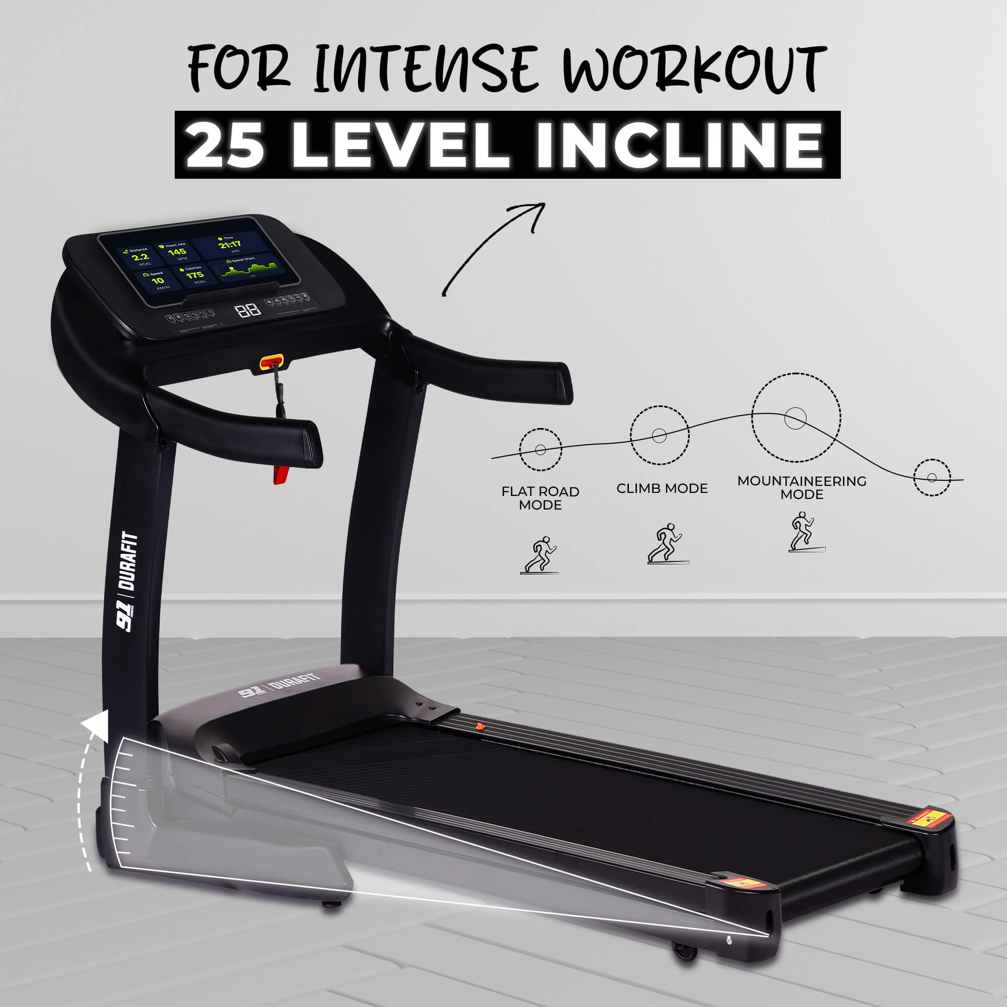 - 25-level auto incline for effective calorie burn and endurance training