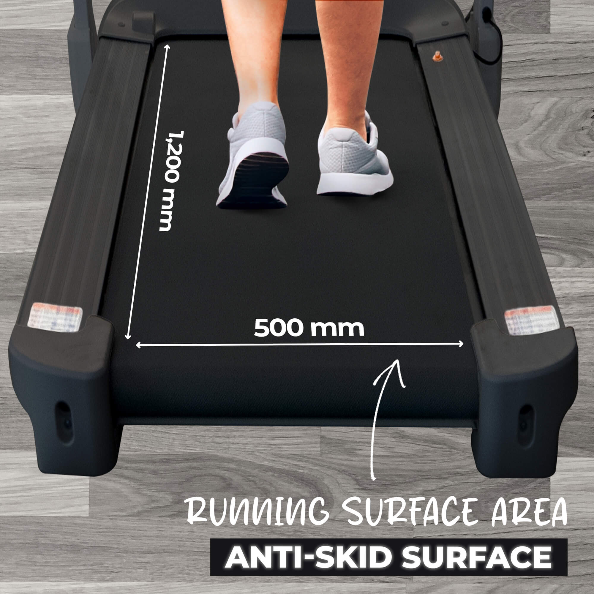 - Spacious 1200 × 500 mm gel-cushioned running deck